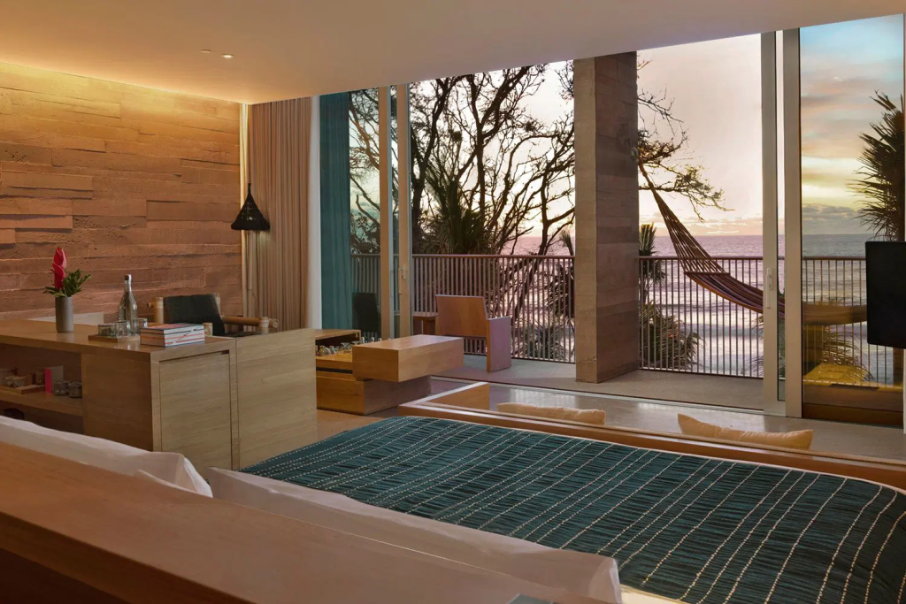 Deep Dive: Don’t let the “Beach Club” reputation fool you—the Suites at Desa Potato Head are a masterclass in acoustic privacy and sustainable luxury. As a solo traveler, you get complimentary access to the beach club daybeds, but you also have the “Sanctuary” pool which is reserved strictly for hotel guests. It’s perfect for those who want a “cool” vibe without the chaos. The interior design uses recycled Bali plastics and beautiful hand-woven textiles, making it feel deeply authentic.
